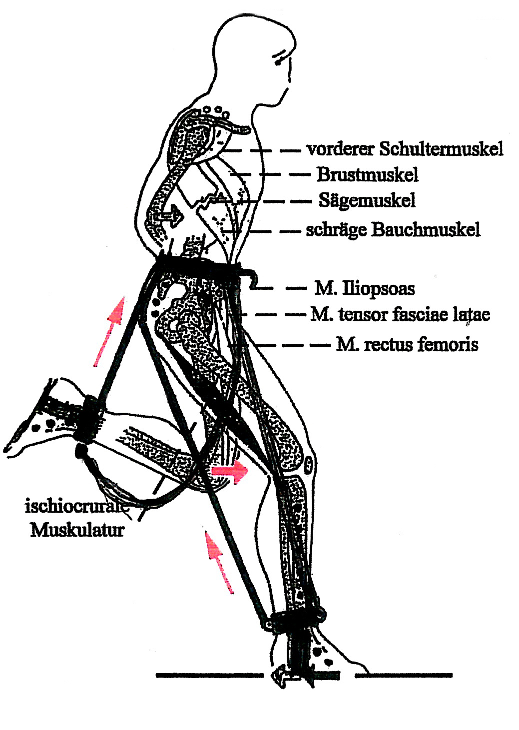 Die Kraftübertragung der Muskelschlingen auf den Boden  |