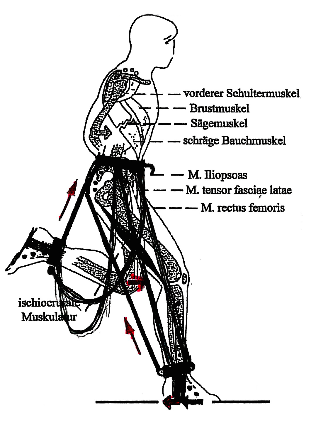 Die Kraftübertragung der Muskelschlingen auf den Boden  |
