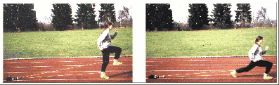 Umsetzungsmöglichkeiten (koordinative Steigerungen) können direkt nach diesen Übungen ausgeführt werden, da dieses Krafttraining auf der Bahn durchgeführt wird. 1. Kniehebegang auf