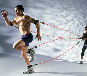 ![]() Der Sprinter läuft gegen Tubing-Widerstand: Die Thera-Tubing-Gummischnüre werden an den   |